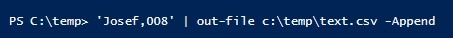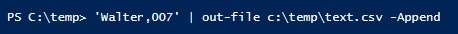 'Walter,007' | out-file c:\temp\text.csv -Append