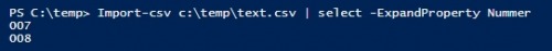 Import-csv c:\temp\text.csv | select -ExpandProperty Nummer