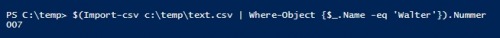 $(Import-csv c:\temp\text.csv | Where-Object {$_.Name -eq 'Walter'}).Nummer