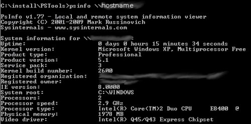 psinfo \\Hostname >> c:\temp\ausgabe.txt