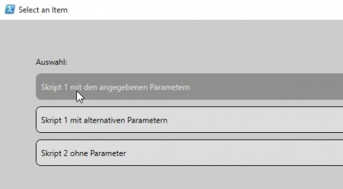Mit folgendem PowerShell-Beispiel kann sehr einfach eine GUI-Auswahl für bestehende PowerShell Skripts erzeugt werden.