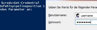 Für die Eingabe von Benutzername und Passwort bietet PowerShell folgendes cmdlet: Get-Credential
