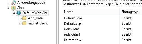 Ein Blick in den Internetinformationsdienste (IIS)-Manger zeigt uns die Dateien die standardmäßig aus diesem Pfad gestartet werden: