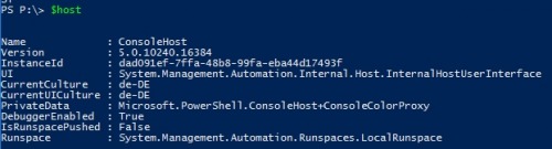 The result of get-host is also available as a variable: $host, i.e. we don't need to run the cmdlet, displaying the already filled variable is enough: