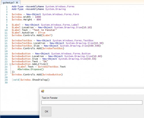 mit $Label.Text = $windowTextBox.Test