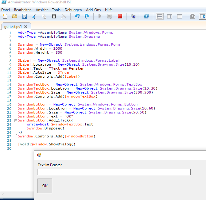 Hier ein paar Beispiele für einfache PowerShell-GUI-Anwendungen mit Windows-Forms.