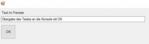 Bei Eingabe eines Textes und Drücken von "OK" wird das Fenster geschlossen und der Text in der Konsole ausgegeben: