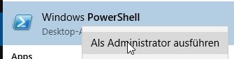 Um die Execution-Policy anzuzeigen und später anzupassen, starte ich PowerShell als Administrator: