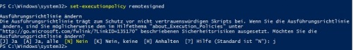 Der vollständige Befehl lautet dann: Set-ExecutionPolicy remotesigned