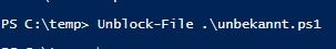 Alternativ können Dateien auch mit dem PowerShell-Befehl Unblock-File erlaubt werden:
