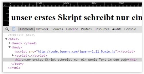$("body").append("<h1>unser erstes Skript schreibt nur ein wenig Text in den body</h1>");