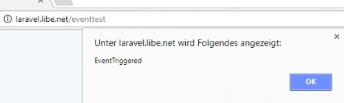 Die URL /eventtest wird über das Auslösen des Events informiert und regiert darauf mit einem Alert: