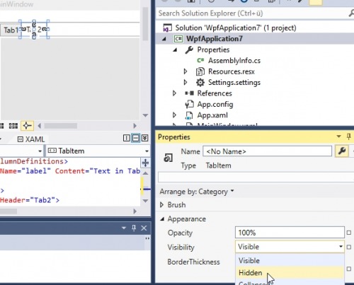 <TabItem Header="Tab2" IsEnabled="False" Visibility="Hidden">