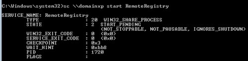 C:\Windows\system32>sc \\domainxp start RemoteRegistry